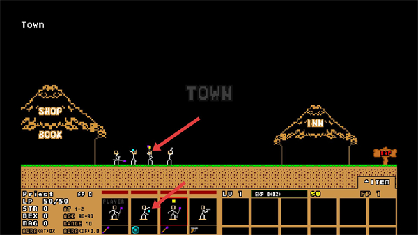 4、在城鎮中可使用購買道具、恢復狀態,同時查看小隊屬性,為冒險做準備。