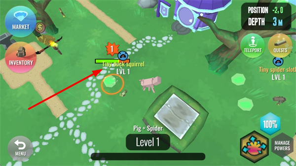 3、進入游戲場景后會看到其他混合動物角色,界面顯示自身角色信息及POSITION等數據,可通過界面按鈕使用INVENTORY等功能。