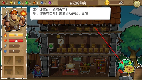 1、進入呆呆大冒險查看提示信息,點擊箭頭指引的區域,開啟追捕小偷的行動,進入對應的關卡場景。