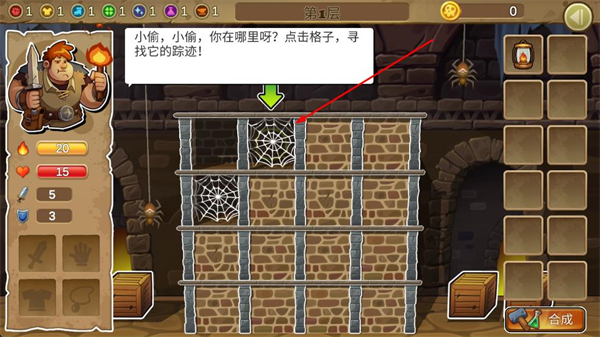 2、來到第1層關卡根據提示點擊蜘蛛網,尋找小偷的蹤跡,場景中探索不同區域,逐步推進關卡進程。