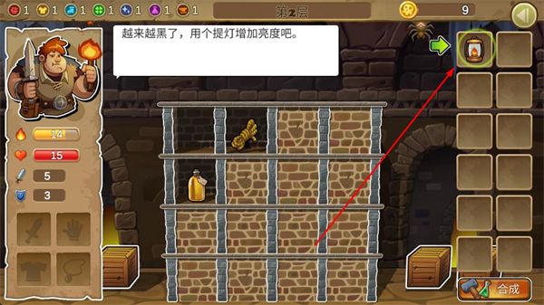 4、進入第2層關卡場景變暗時,點擊使用提燈增加亮度,便于在昏暗環境中繼續探索,尋找更多道具和線索。