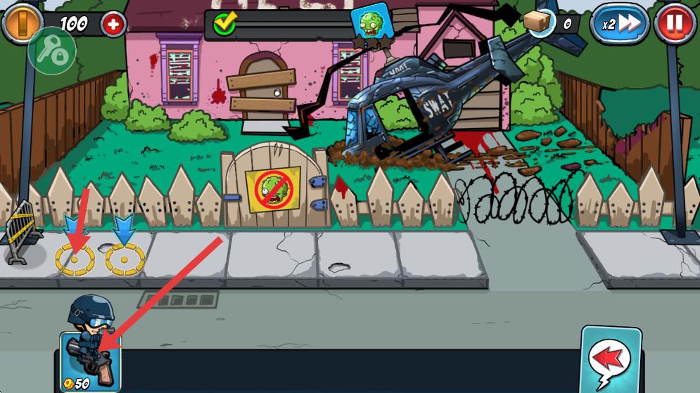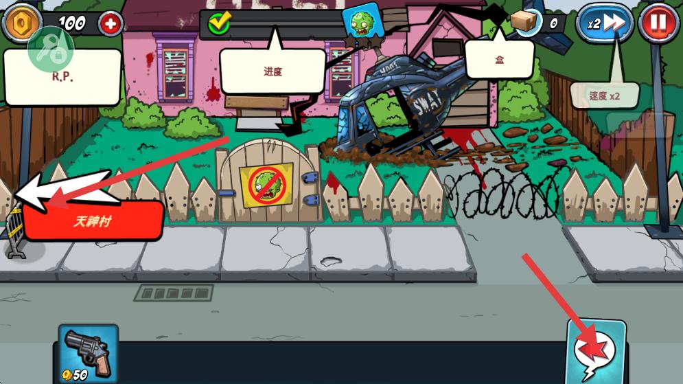 3、戰斗中消耗金幣部署單位如持槍手,單位會自動攻擊僵尸,需合理規劃部署位置,提升防御效率。
