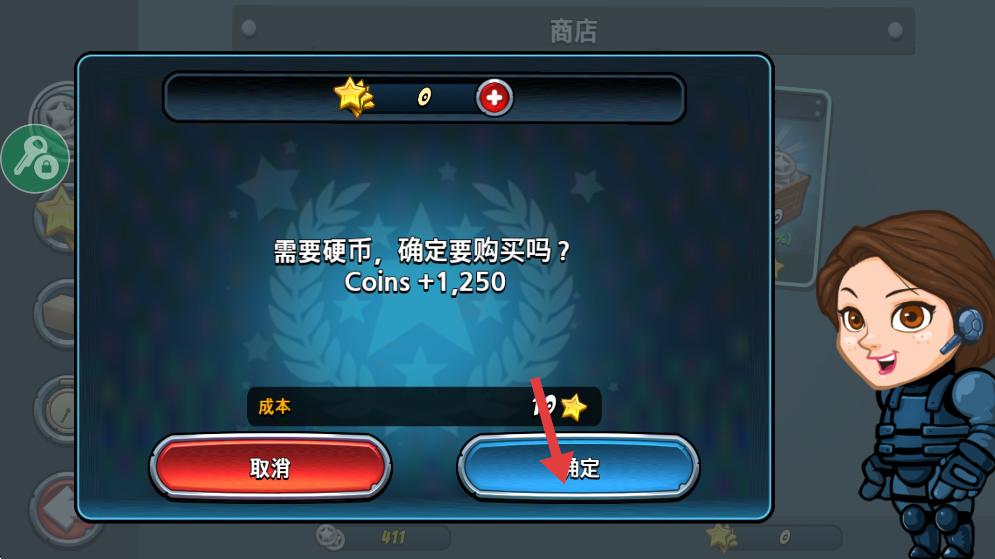 4、商店界面中消耗星星可兌換金幣如10星兌換1250金幣,點擊確定完成交易,積累金幣提升戰斗儲備。