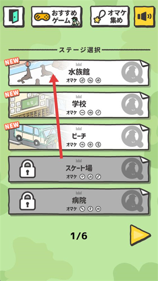2、關卡選擇界面中初始解鎖水族館、學校等關卡,點擊水族館可進入該場景開始尋找僵尸。