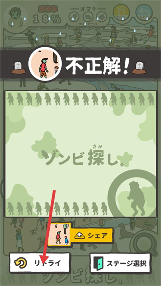 4、若識別錯誤會顯示不正解,可重新挑戰當前關卡,調整觀察策略后再次尋找僵尸目標。