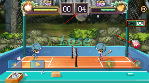 1、開局用左右按鍵移動角色,緊盯羽毛球,時機到點擊擊球按鈕,快速適應基礎操作銜接。