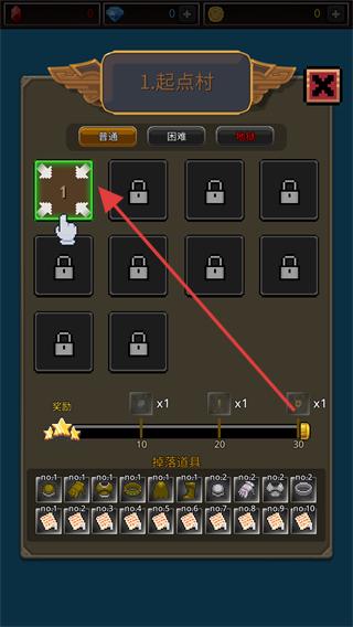 1、在關卡選擇界面,點擊已解鎖的起點村關卡,進入對應關卡的戰斗流程,開啟初始關卡的挑戰。