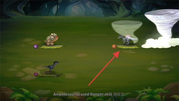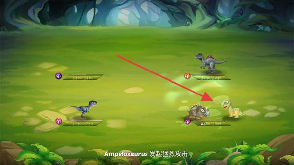 2、進入戰斗后,指揮恐龍集火敵方狀態較差的恐龍,留意雙方單位的狀態,借助己方攻擊壓制敵方血量。