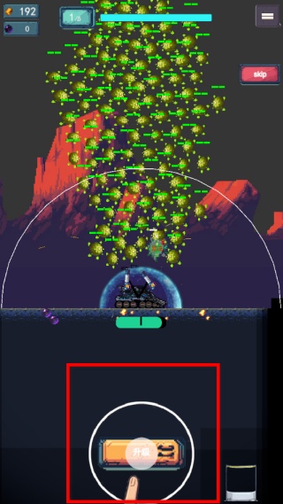 1、游玩時點擊升級按鈕,可解鎖或強化武器,用這些武器自動攻擊襲來的怪物,積累戰斗進度,同時留意上方的怪物波數變化。