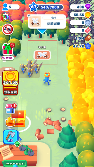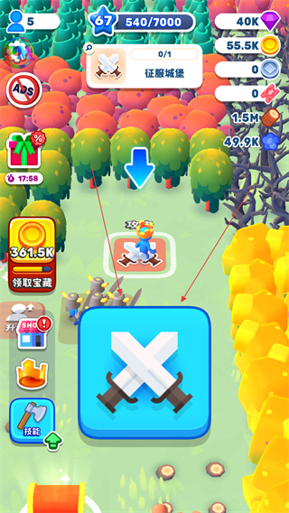 1、點擊界面中的征服城堡標識,集結己方士兵向目標區域移動,準備開展對應的領地爭奪行動。