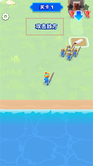 4、在關卡1中點擊攻擊敵方指令,操控己方角色向敵方士兵發起沖鋒,開啟戰斗對決。
