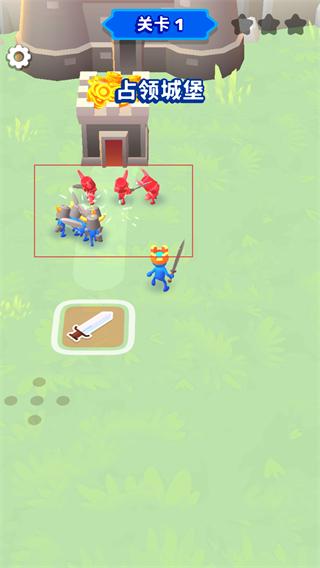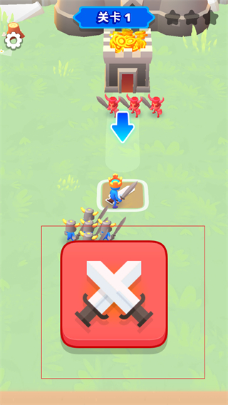 1、在關卡1中點擊交叉劍圖標,讓己方士兵向敵方紅色部隊發起進攻,開啟關卡內的戰斗環節。