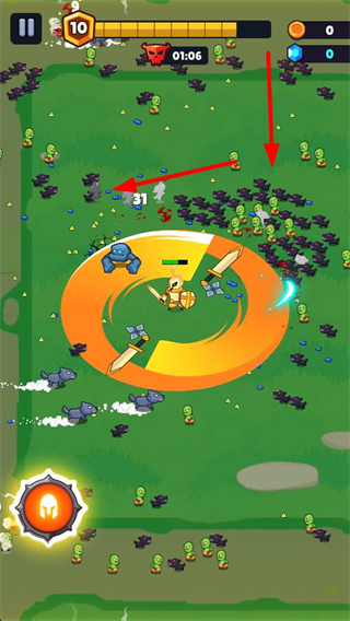 4、釋放技能后會觸發強力攻擊效果,同時之前選擇的召喚獸會協助作戰,和騎士一起對抗大量怪物,快速清理戰場提升等級。