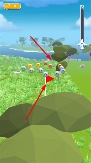 2、飛行過程收集沿途的金幣和道具,這些物品會助力提升飛行表現,同時留意場景的標識物,調整飛行方向。