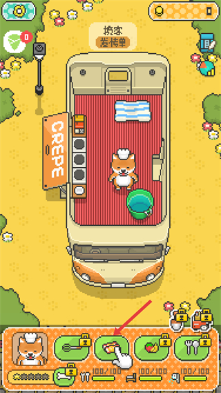 2、進入柴犬店長的可麗餅店場景后,找到界面下方的傳單圖標,點擊該圖標即可觸發發傳單操作,這一操作能吸引顧客。