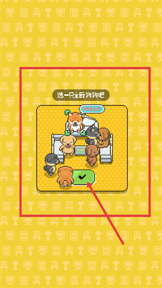 1、首先選擇小狗的界面中,確定所選小狗后,點擊帶有對勾標識的選項,即可進入游戲主流程,這是開啟發傳單任務的前置步驟。