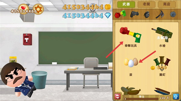 2、打開武器界面后,能看到多種道具選項,比如【拳擊玩具】【蛋】等,可選擇對應的道具進行裝備。