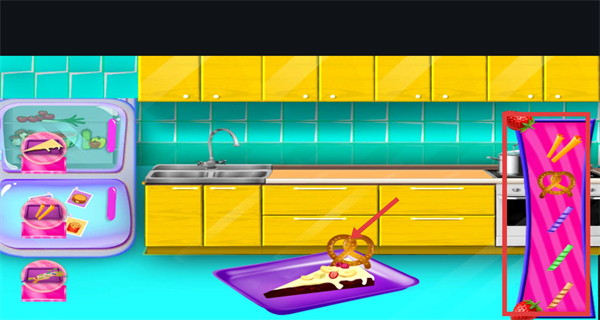 4、在菜品基礎形態完成后,可添加裝飾食材,比如界面中的裝飾類食品,完成裝飾后菜品會更精致,此時可確認菜品制作完成,推進后續的展示或收集流程。