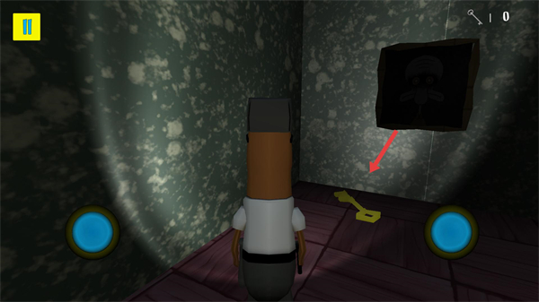 2、移動角色找到地面上的鑰匙道具,靠近并獲取該道具,為后續的解謎或推進流程積累物品。