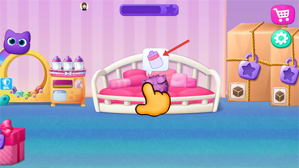 4、點擊對應的道具,將其使用在寵物身上,滿足寵物的需求,完成當前的互動任務,推進游戲的劇情進展。