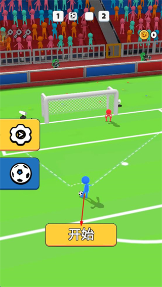 1、打開火柴人足球比賽游戲首頁,點擊底部的開始按鈕可以直接進入游戲關卡內。