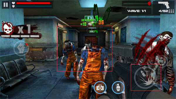 4、瞄準前方出現的僵尸發射子彈,命中后消滅目標并獲取積分,推進當前波次的戰斗進度。