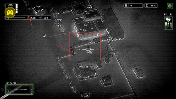 1、進入夜視場景后,使用武器推進任務,界面會顯示資源獲取提示,需優先清理區域內目標,同時留意場景中的可交互點。