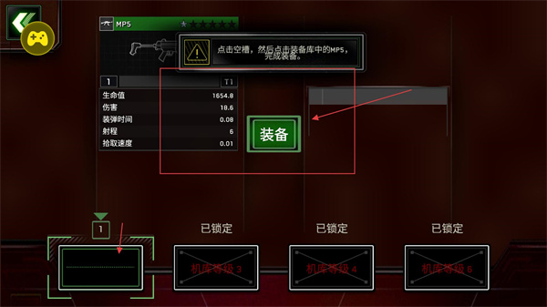 1、在機庫界面,點擊空槽后選擇裝備庫中的MP5,可完成部隊裝備配置,其余槽位需提升機庫等級解鎖,機庫等級決定可配置的部隊。