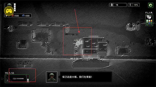 4、進入任務場景后,使用武器保護目標建筑,消滅靠近的敵人,界面提示保衛這座大樓,需持續輸出火力清除敵方單位,確保建筑安全。