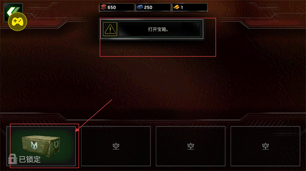 2、軍庫修復后出現寶箱,當前寶箱處于鎖定狀態,需完成對應條件解鎖,寶箱是獲取資源、道具的重要途徑。