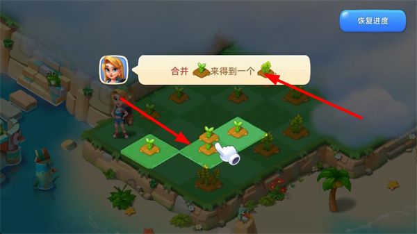 1、按照提示合并相同的植物,將低階植物合并能得到更高階的植物,以此推進游戲進程,解鎖更多內容。