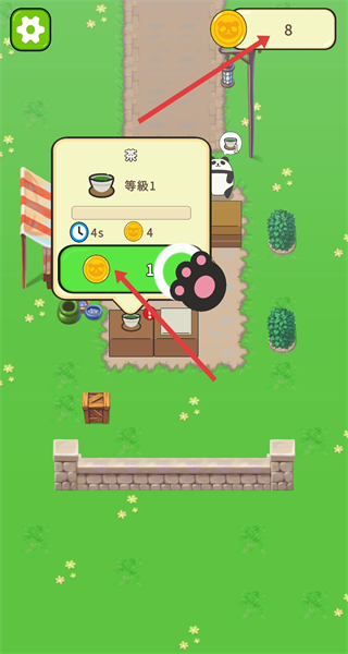 2、迷你劇情隨著店鋪等級提升逐步展開,圍繞一只特別淘氣且熱愛金錢的熊貓展開的小故事增添了敘事趣味。