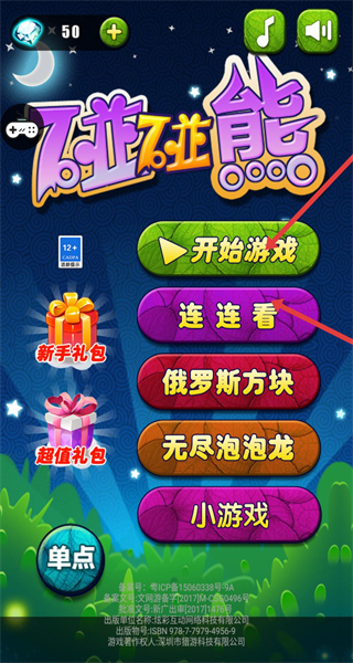 1、打開游戲選開始游戲進入模式選擇,也可玩連連看俄羅斯方塊等其他玩法,領新手禮包超值禮包。