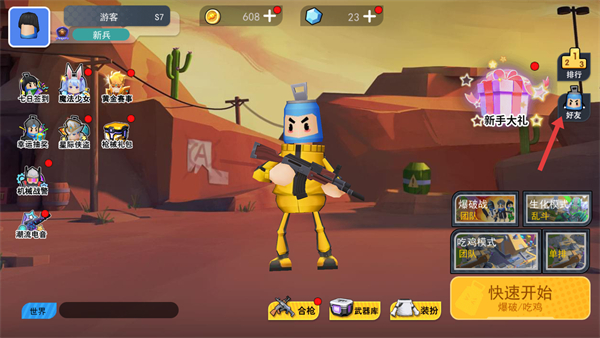 1、主界面可看到右側好友功能按鈕,點擊該按鈕即可進入好友相關操作界面,開啟添加好友的流程,后續可在該界面進行好友添加操作。