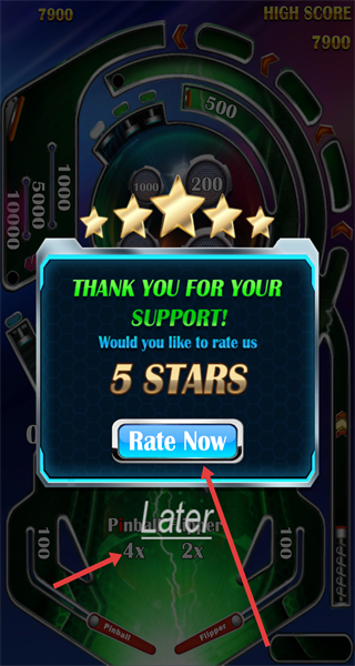 4、游戲結束后想好評點Rate Now,暫不評選點擊Later繼續游戲,依據體驗決定是否給5星支持。