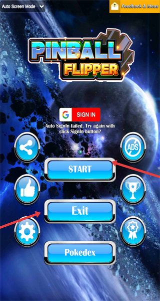 1、打開Pinball Flipper,可點SIGN IN登錄想玩直接點START開始,遇問題點擊Exit退出重新進入。