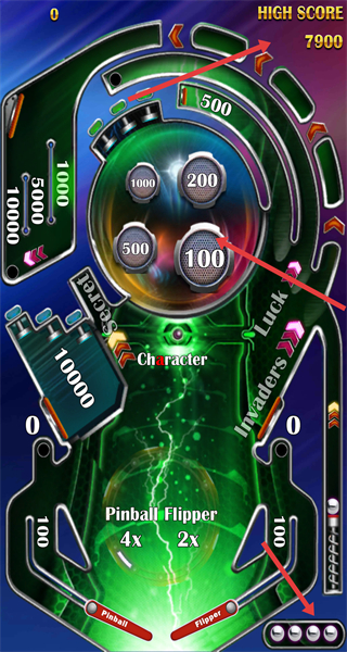 2、游戲中操控彈珠讓其沿軌道撞擊分值區域,留意側邊按鈕合理觸發道具得分爭取高分突破。