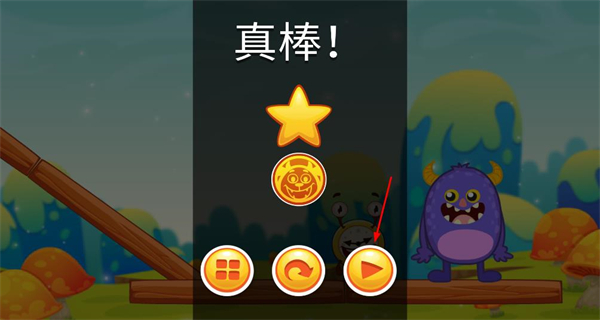 4、完成關卡操作后顯示真棒提示,獲得星星與道具獎勵,點擊對應的繼續按鈕進入下一個環節。