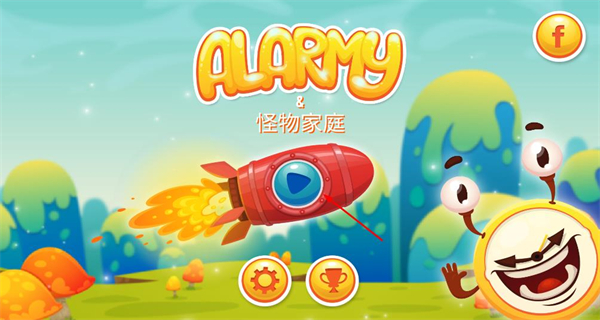 1、打開游戲后,界面顯示火箭樣式播放按鈕及設置獎杯選項,點擊該按鈕進入關卡選擇頁面。