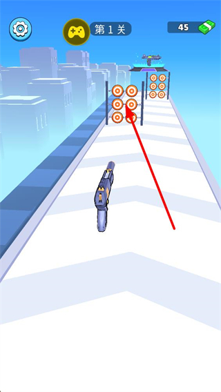 2、進入關卡后會出現多個靶標,操控槍械射擊這些靶標,完成射擊目標是通關的核心操作,需精準命中以推進關卡進度。