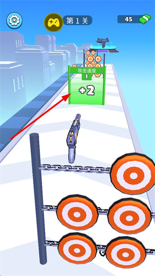 3、闖關過程中會遇到增益道具,如攻擊速度加2的道具,獲取后可提升槍械的攻擊效率,助力更高效地完成后續射擊任務。