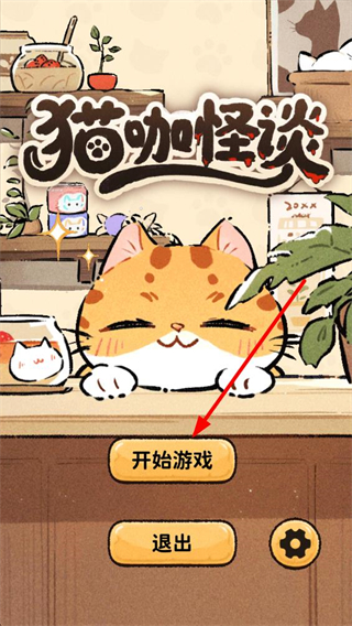 1、進入游戲啟動界面,可看到貓咖怪談主題畫面,點擊開始游戲按鈕,即可進入貓咖經營的游戲場景,開啟經營挑戰。
