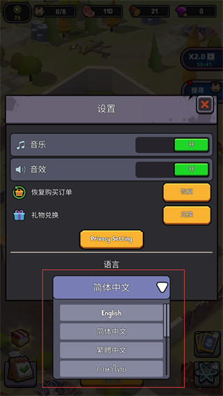 3、在語言選擇列表中選擇對應語言選項,確認后游戲界面會切換為該語言的顯示內容。