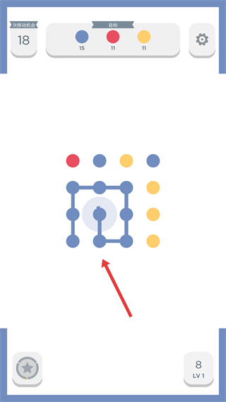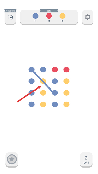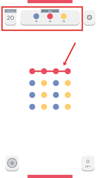 1、進入關卡后先查看頂部的剩余步數與收集目標,連接同色圓點積累進度,消除后可推進紅色收集目標,同時減少剩余步數。