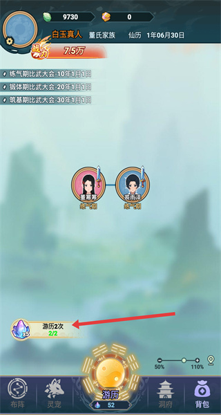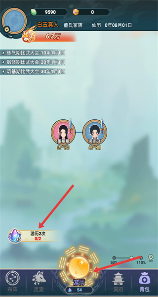2、進入主界面后,查看任務列表,找到底部區域的游歷按鈕,點擊該按鈕開展游歷操作,每次游歷會消耗對應的次數。