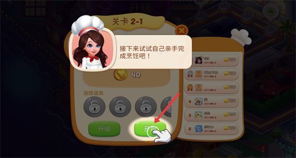 1、進入關卡對應的準備界面后,找到界面中的開始按鈕并點擊,進入烹飪關卡的實際操作場景。