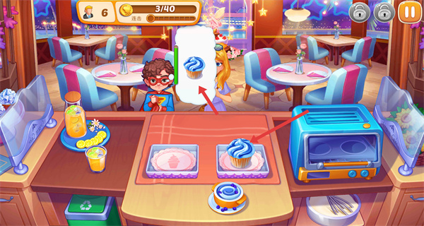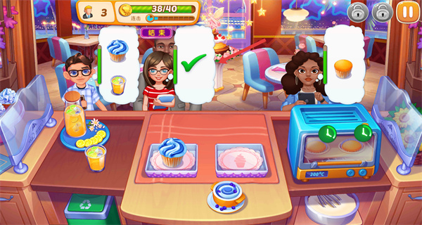 3、持續關注后續新增的顧客需求,依次匹配并提供對應的成品菜品,逐步填滿關卡的進度條,直至滿足該關卡的完成條件。