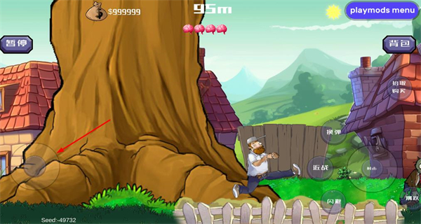 4、繼續推進游戲,角色移動到大樹區域,操控角色躲避障礙,持續推進游戲的游玩進度。