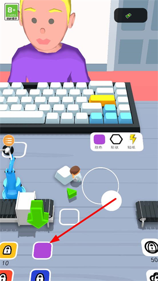 2、可選擇不同屬性的道具,比如調整物品的顏色樣式,通過這些定制操作,為后續組裝的鍵盤賦予個性化外觀,豐富游戲體驗。