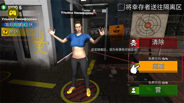 2、對帶有黃顏色可疑癥狀的幸存者,點擊隔離按鈕將其送入隔離區,需注意隔離區的容量限制,合理分配空間以確保后續檢疫工作。